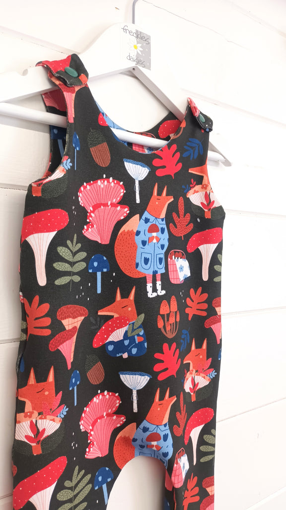 These versatile rompers, cut in a harem style are fashionable yet practical, are cut for nappies and all seams are serged/overlocked for durability when your little one is on the move.