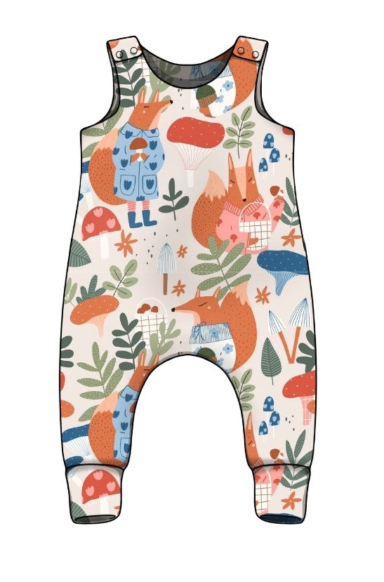 These versatile rompers, cut in a harem style are fashionable yet practical, are cut for nappies and all seams are serged/overlocked for durability when your little one is on the move.
